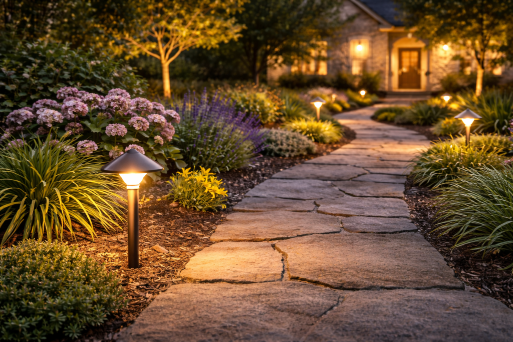 Illuminate walkways, garden beds, and landscape features with warm, inviting light. Solar and low-voltage options.