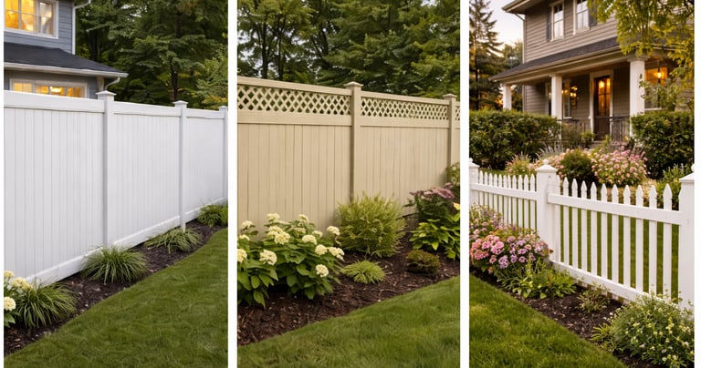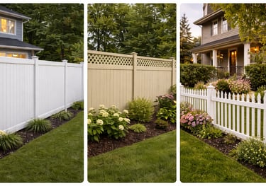 Durable, low-maintenance vinyl fencing available in white, khaki, and grey. Perfect for privacy, security, and clean modern curb appeal.
